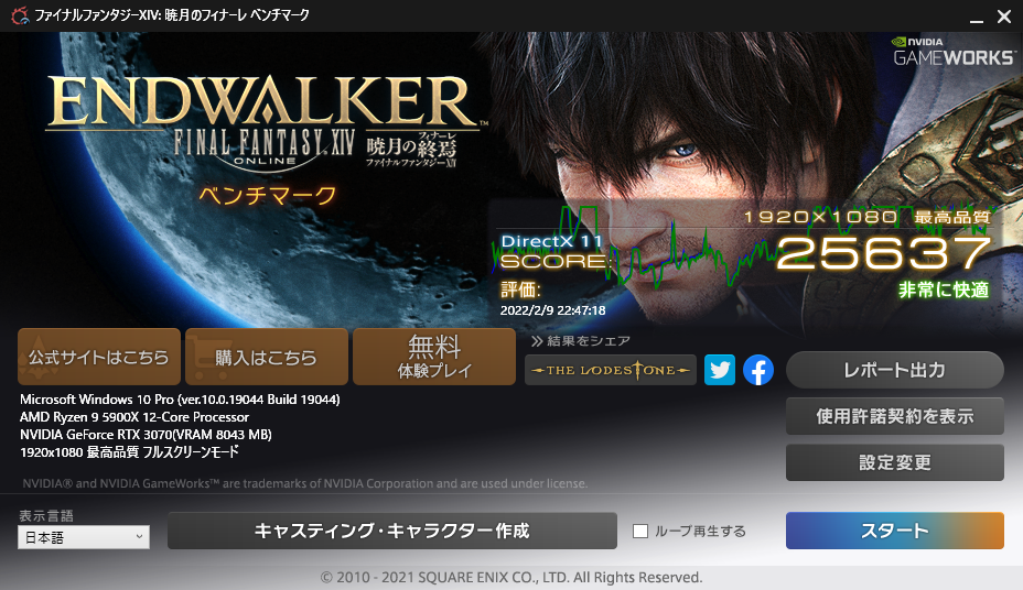 最高品質 1920x1080 フルスクリーン 評価:すごく快適 スコア:24980