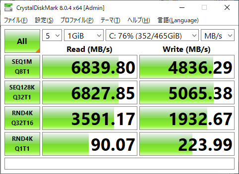 ソフトの起動など体感速度に影響するのは下側のランダムリード・ライトなので